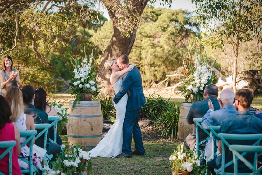 Arimia Winery is a little hidden gem in the South West, Emma & Daniel’s intimate wedding was just gorgeous set against the backdrop of this wineries big trees and green gardens.
