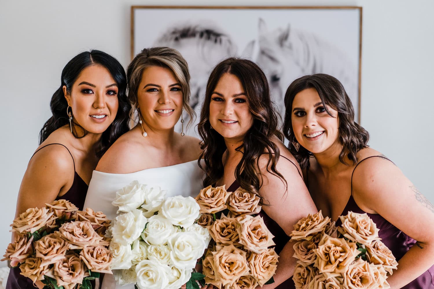 Hair: Chrystal D Hair   Make up: Make up by Melanie   Brides Dress:  Tuscany Bridal  Bridesmaids Dresses: Natalija the Label  Suits: Tarocash   Venue:   RiverBank Estate Bouquets: Maple and Wren